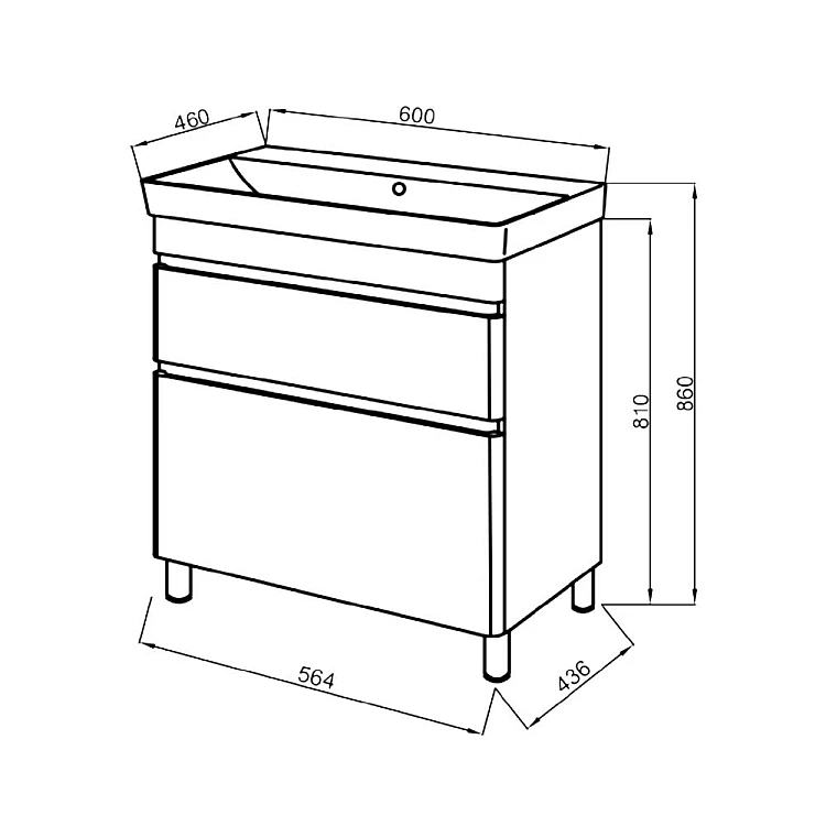Характеристики - Тумба ЮВВІС напольная ТНБ-2 Д 60 с умывальником VIVACE белый глянец
