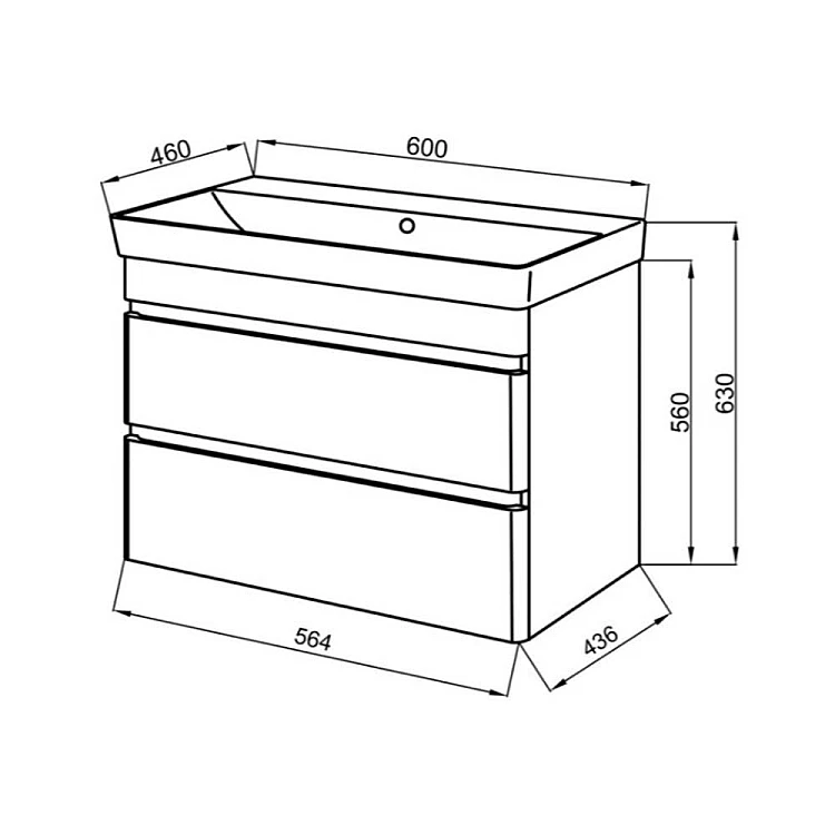 Описание товара - Тумба ЮВВІС подвесная ТПБ-2 Д 60 с умывальником VIVACE антрацит