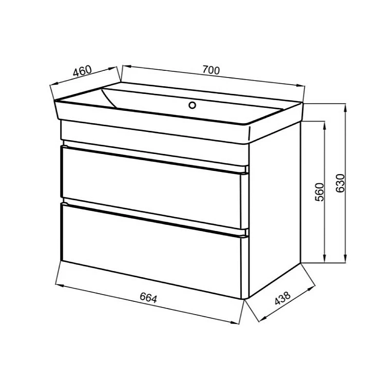 Описание товара - Тумба ЮВВІС подвесная ТПБ-2 Д 70 с умывальником VIVACE антрацит