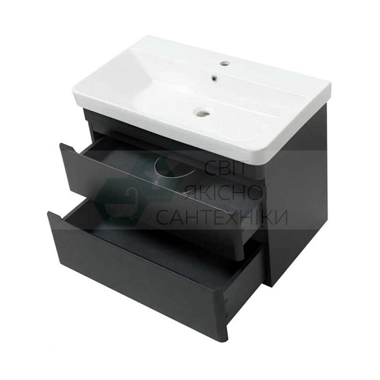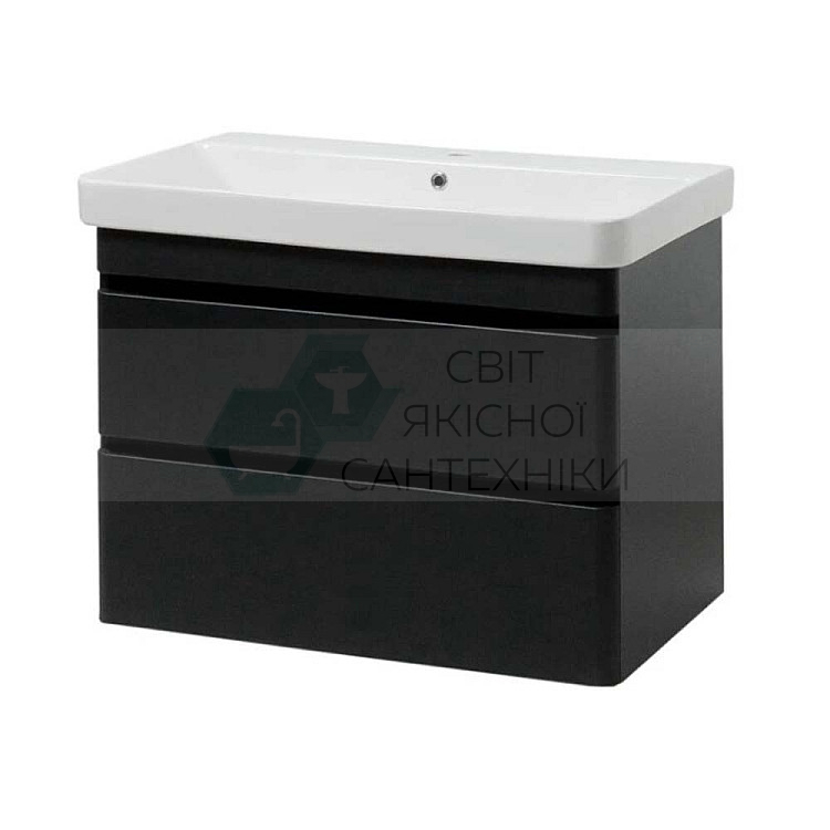 Описание товара - Тумба ЮВВІС подвесная ТПБ-2 Д 80 с умывальником VIVACE черный матовый