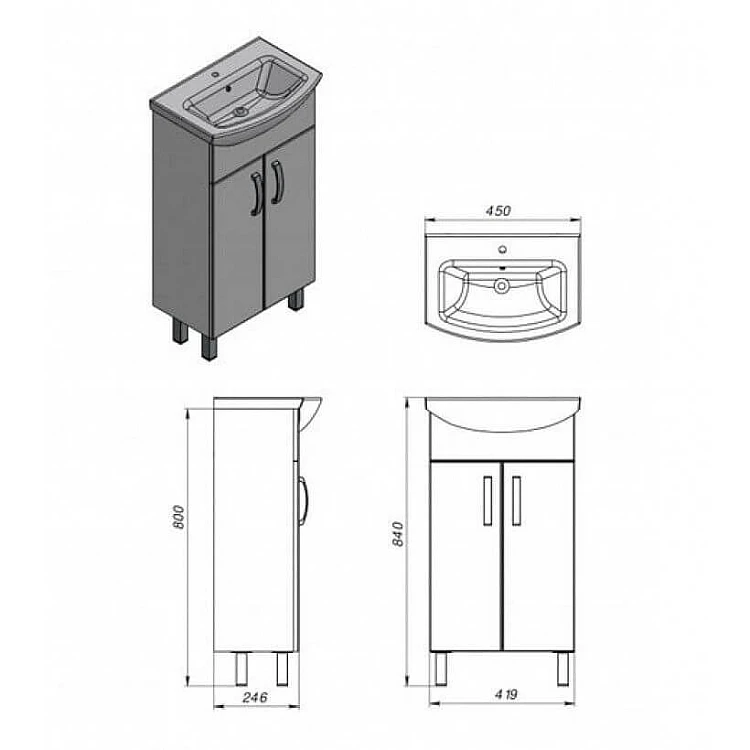 Комплектуется керамическим умывальником «Лидер-45», производитель «Керамин», Беларусь.