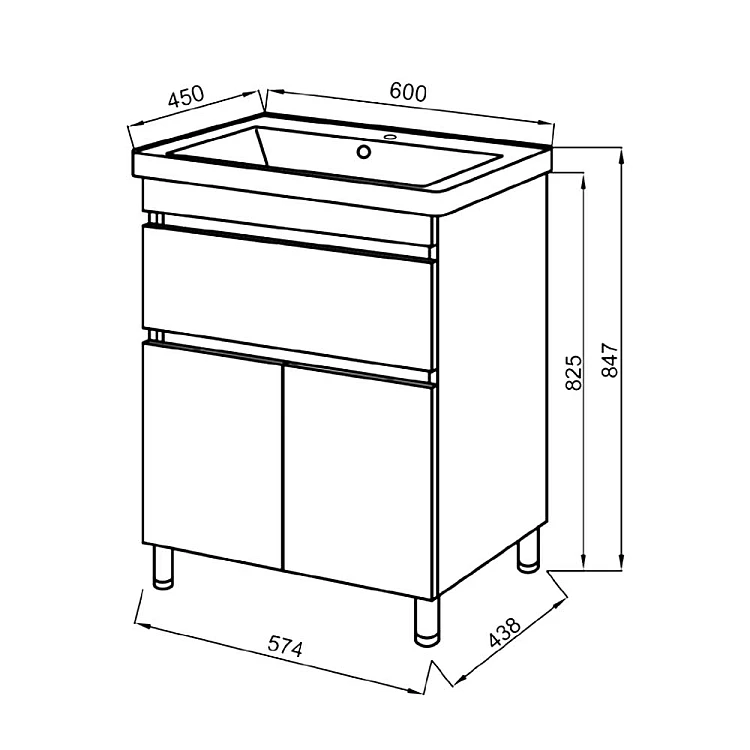 Характеристики - Тумба ЮВВІС Монако напольная ТН-3 60 с умывальником Vesta
