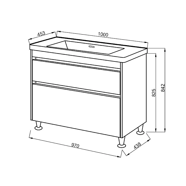 Тумбы и пеналы укомплектованы четырьмя регулирующими ножками из хромированной стали.