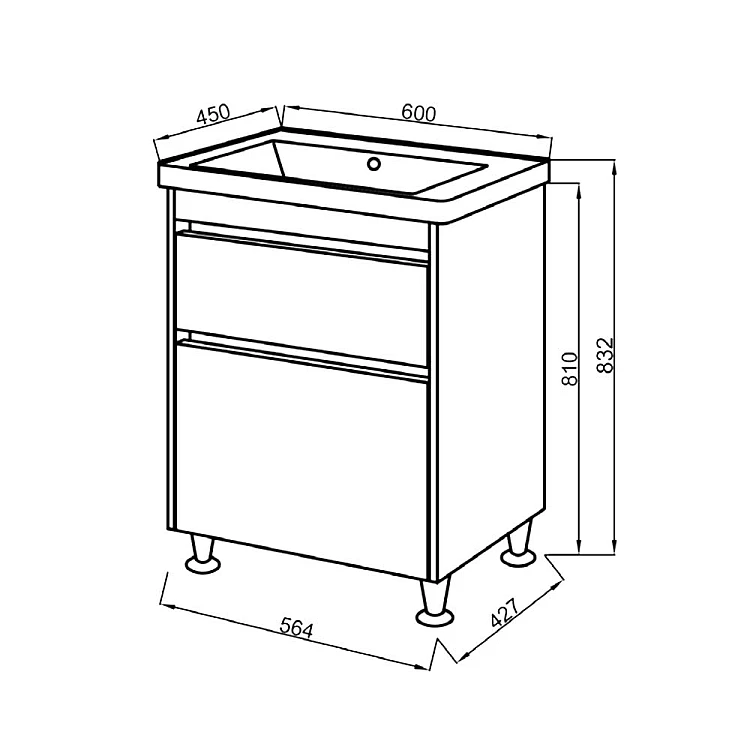 Характеристики - Тумба ЮВВІС Венера напольная ТНБ-2 Д 60 с умывальником Vesta Дуб - Тахо