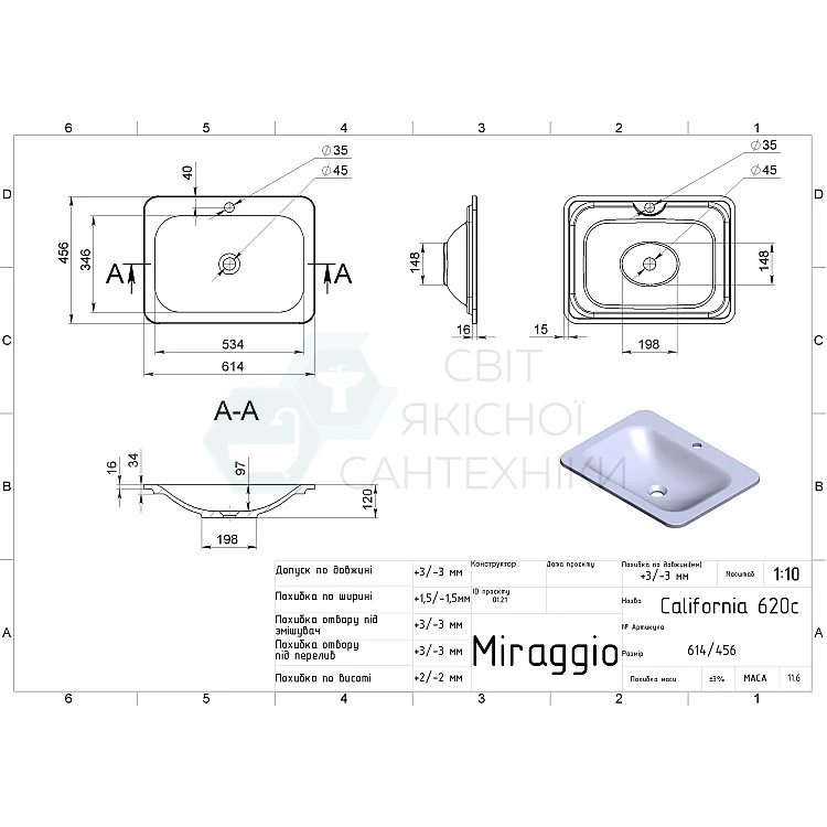 MIRAGGIO - украинский бренд, более 10 лет специализирующийся на изготовлении сантехники из литого мрамора.