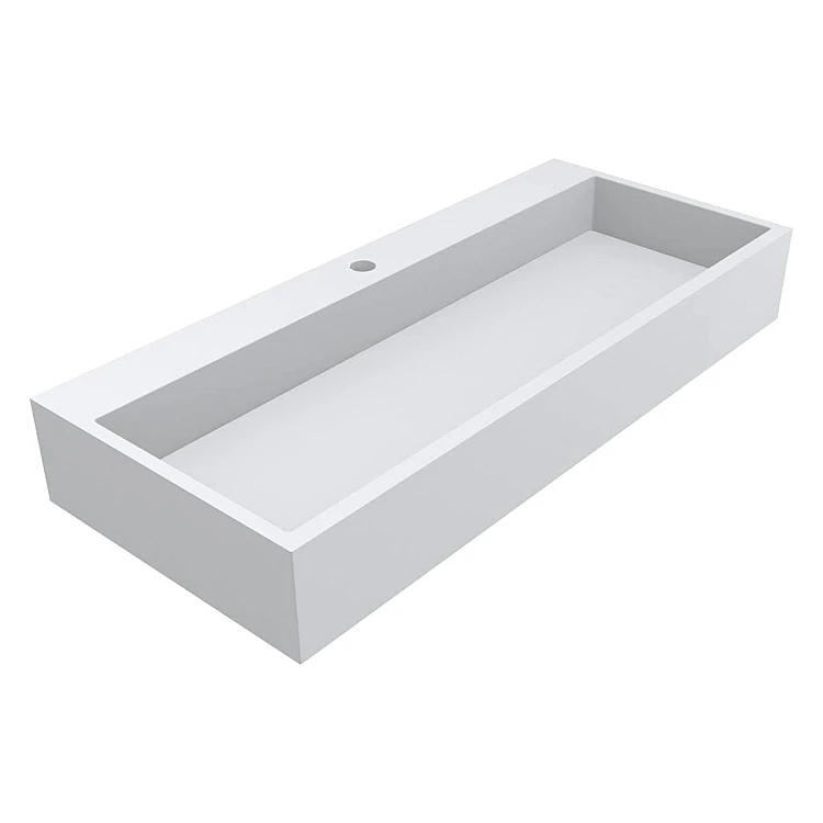 Прямоугольная по форме чаши раковина имеет тип монтажа – накладной; врезной, учтите это перед заказом мебели в ванную комнату.