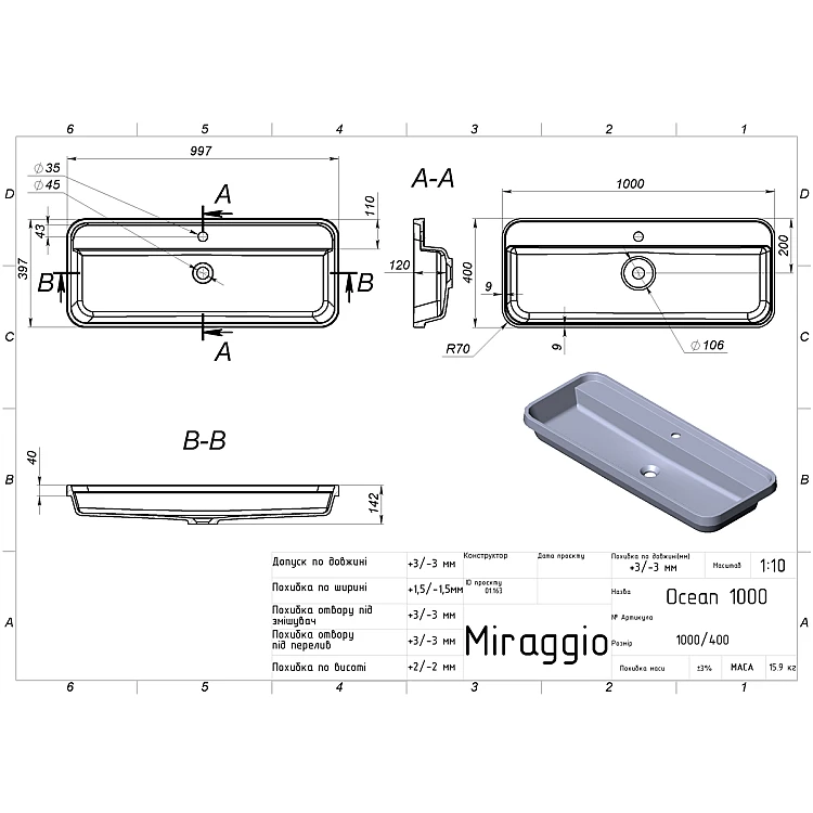 MIRAGGIO - украинский бренд, более 10 лет специализирующийся на изготовлении сантехники из литого мрамора.