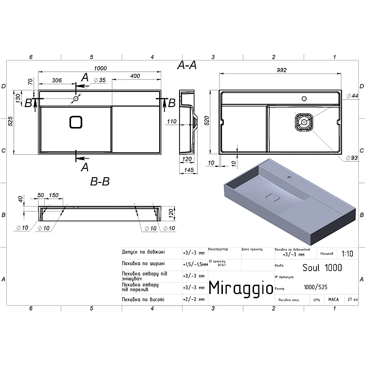 MIRAGGIO - украинский бренд, более 10 лет специализирующийся на изготовлении сантехники из литого мрамора.
