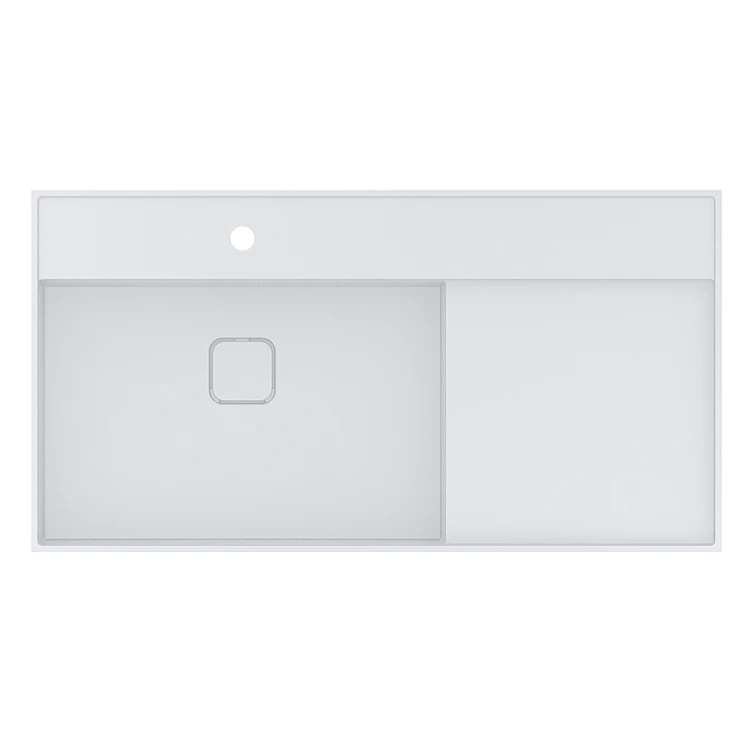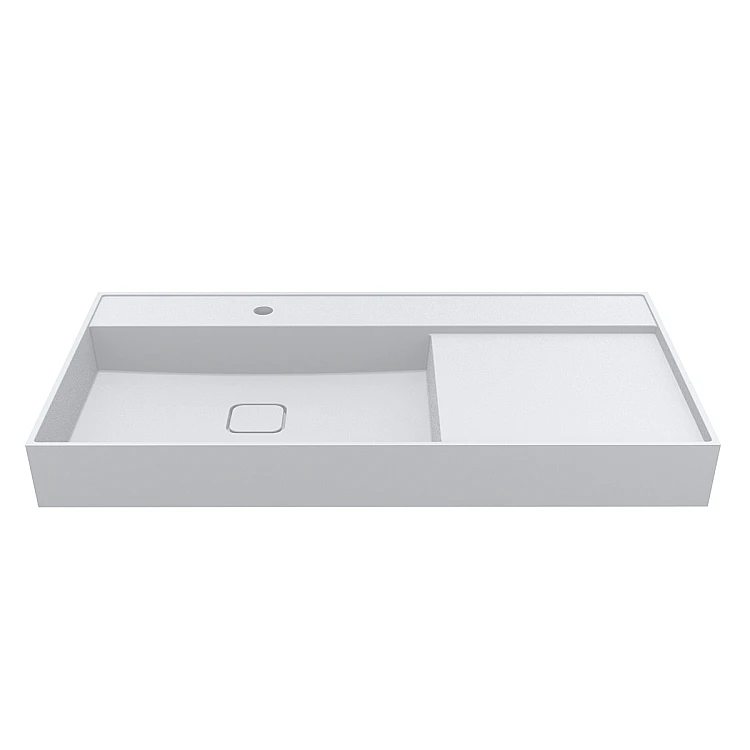 Прямоугольная по форме чаши раковина имеет тип монтажа – подвесной, учтите это перед заказом мебели в ванную.