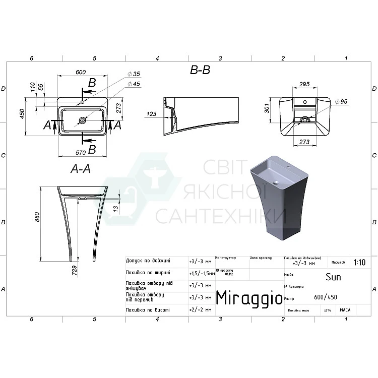 MIRAGGIO - украинский бренд, более 10 лет специализирующийся на изготовлении сантехники из литого мрамора.