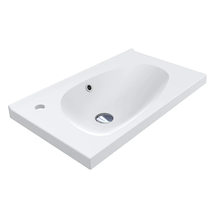 Прямоугольная; Асимметричная по форме чаши раковина имеет тип монтажа – накладной; врезной, учтите это перед заказом мебели в ванную комнату.