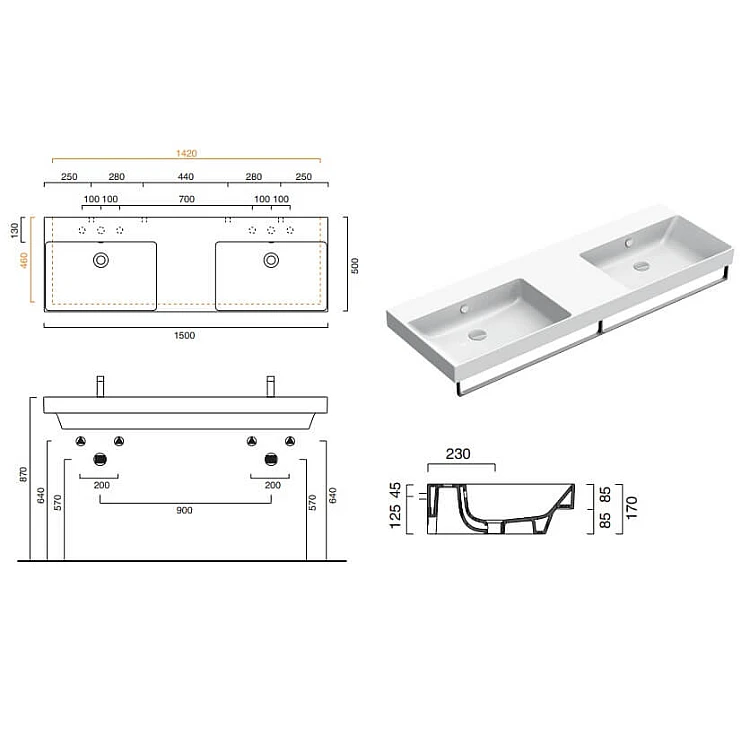Умывальник CATALANO NEW ZERO 150x50 1150ZEDUP00