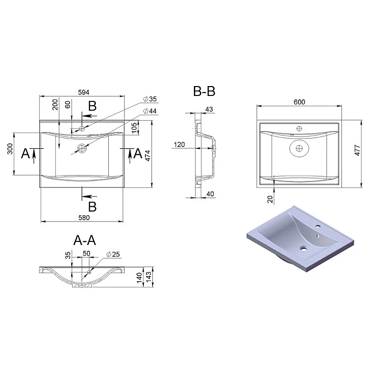 Получите AI советы по Умывальник Fancy Marble Lucia 600 1306101 из литого камня