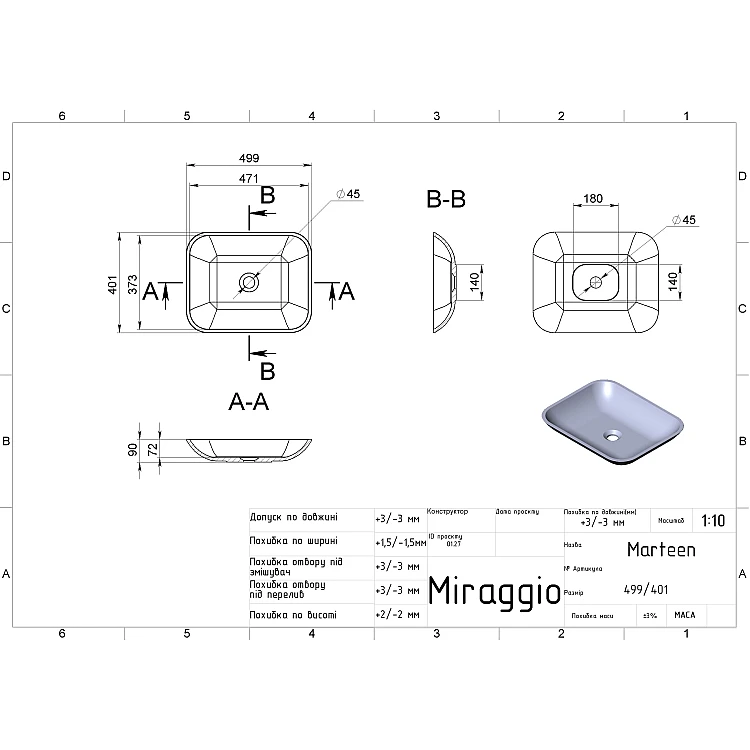 Характеристики - Умывальник MARTEEN