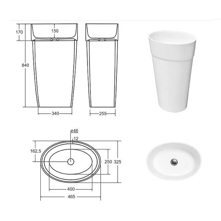 Умывальник отдельностоящий BESCO UNIQA B&W 32х46