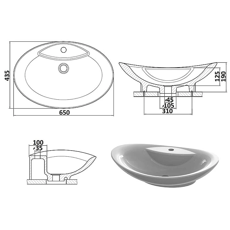 Умывальник Snail «Гармония» 65x43,5 (102А100М) белый матовый