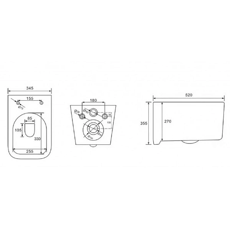 Унитаз подвесной Rea Tino Rimless 34x52 REA-C2630