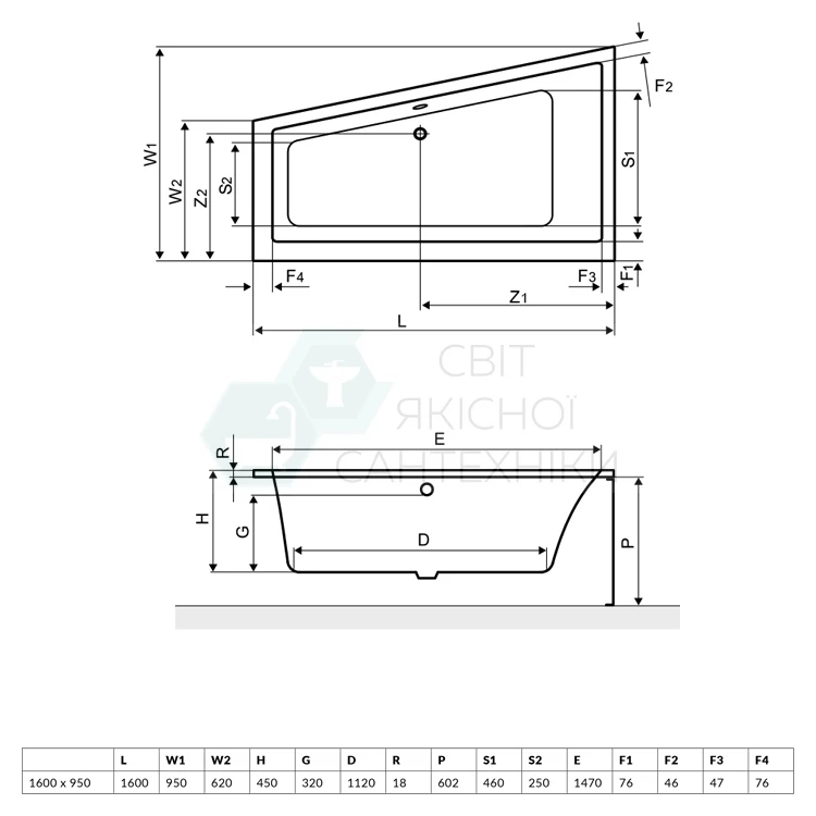Ванна акриловая угловая 1600x950 Excellent M-Sfera правая (WAEX.MSP16WH)