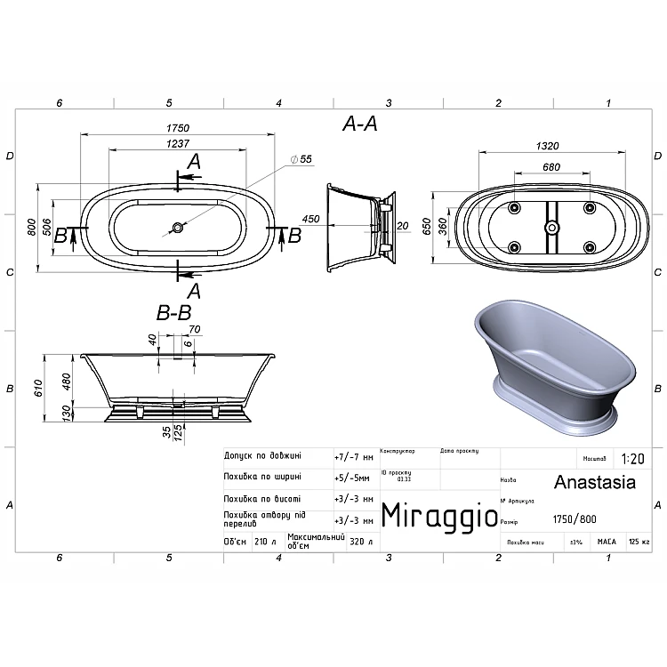 Характеристики - Ванна ANASTASIA MIRASOFT