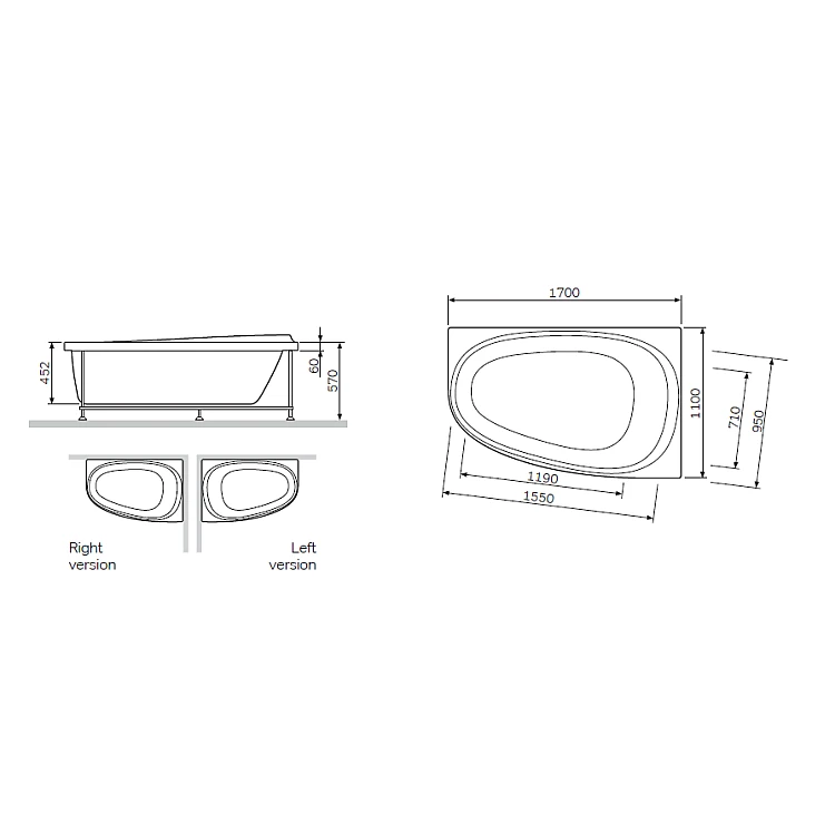 Ванна ассиметричная AM.PM Like W80A-170L110W-A L - левосторонняя