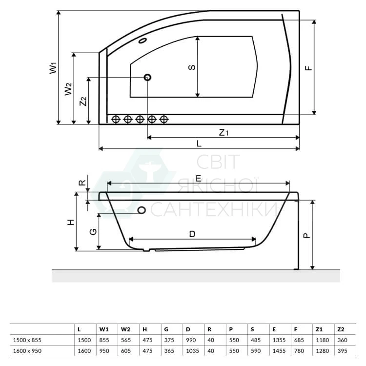 Ванна акриловая угловая 1600x950 Excellent Magnus левая (WAEX.MGL16WH)