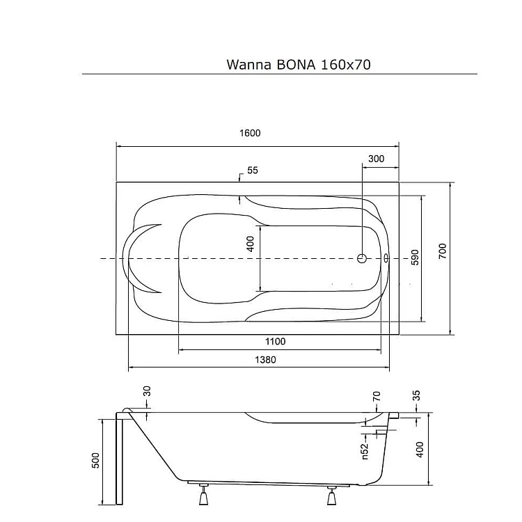 Ванна BESCO BONA 160x70 2020508