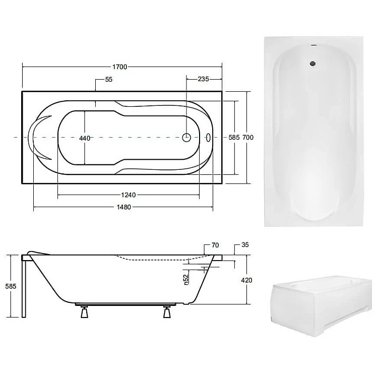 Ванна прямоугольная BESCO BONA 170x70 2020608