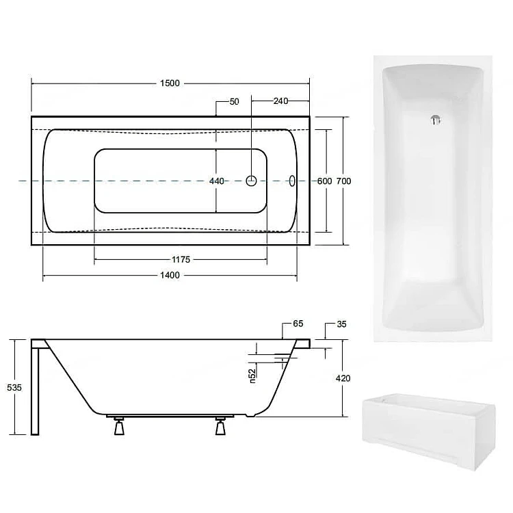 Ванна прямоугольная BESCO OPTIMA 150x70 2025008