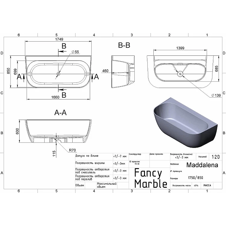 Получите AI советы по Ванна отдельностоящая Fancy Marble Maddalena 175x85