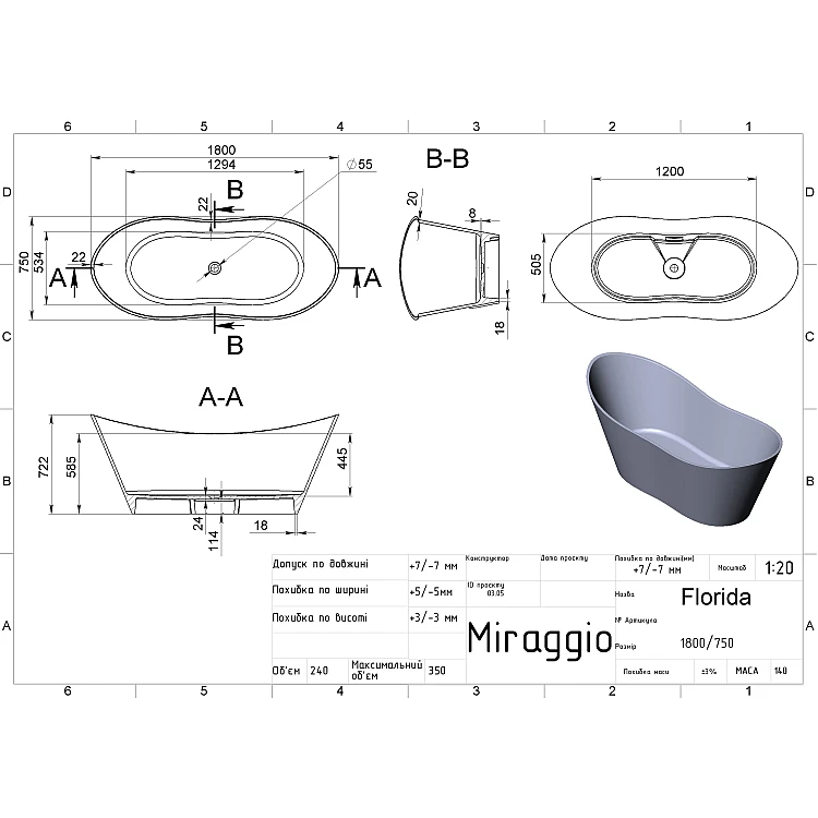 Характеристики - Ванна FLORIDA MIRASOFT