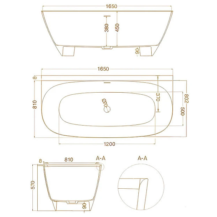 Отзывы - Ванна отдельностоящая WGT DEA WALL Light 1630х820, Water Composite, белый глянец