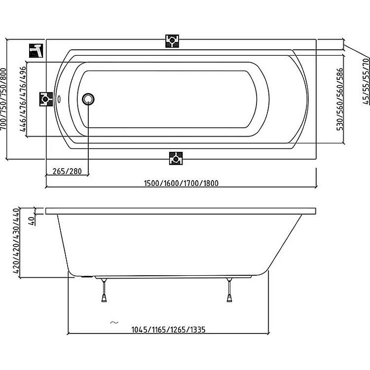 Ванна прямоугольная 160х75 Domino II