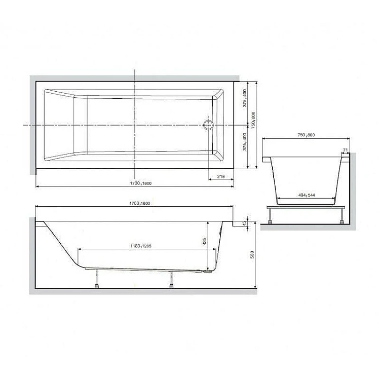 Ванна прямоугольная NOVELLINI CALOS CA1117075A 170x75