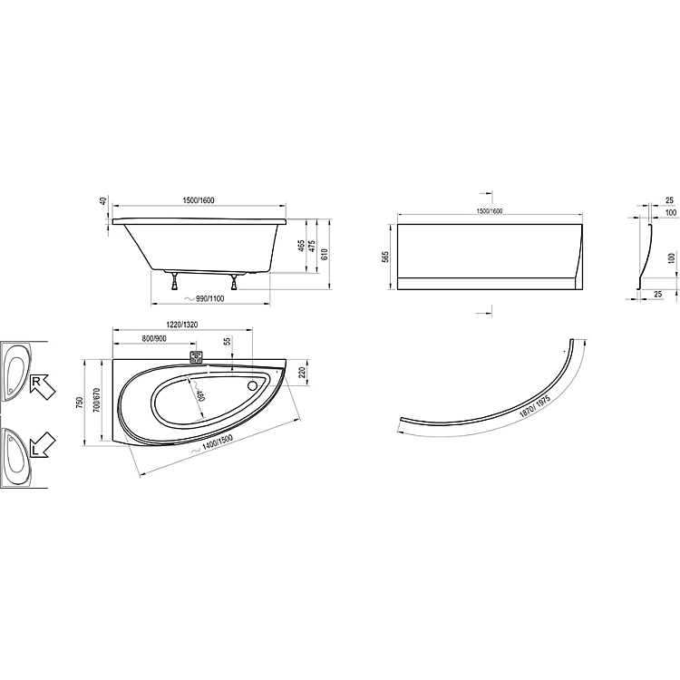Характеристики - Ванная ассиметричная 150x75 Ravak AVOCADO CS01000000 R - правосторонняя