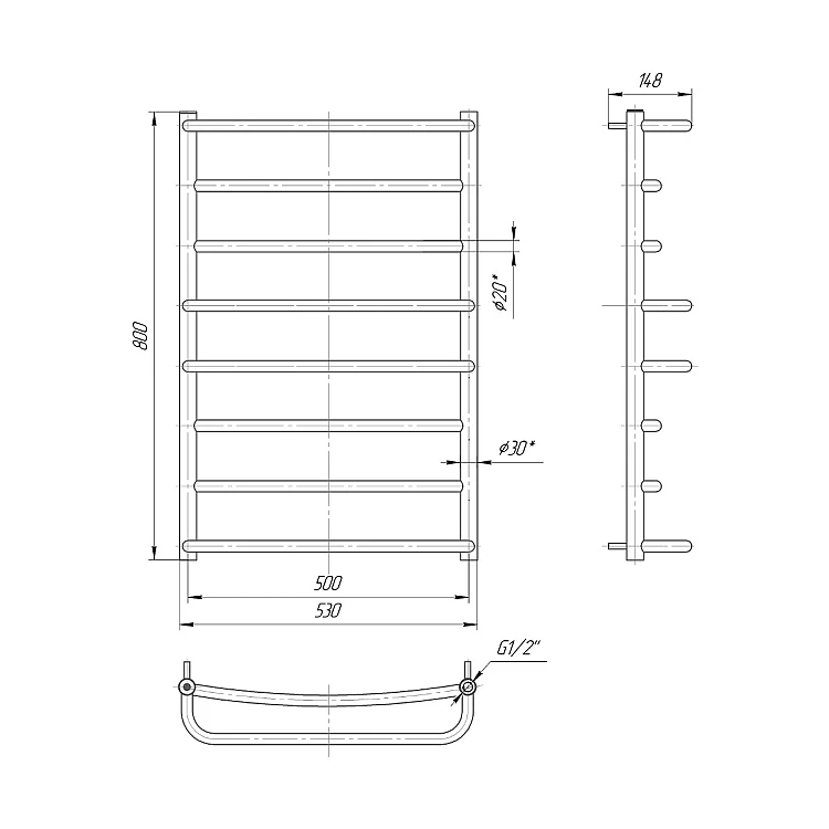 Гармоничный дуэт надежности и практичности прекрасно воплощен в данной модели водяного полотенцесушителя Люкс 800x530/500, где 800 мм - высота, 530 мм – ширина, а 500 мм – межцентровое расстояние. Безупречное качество и пожизненная гарантия основаны не только на двадцатилетнем опыте компании-производителя на рынке, но и на использовании в производстве европейской нержавеющей стали марки AISI 304. Данная модель имеет в своей конструкции 8 перемычек, из которых 4 выступающие перемычки П-образной формы для более практичного применения полотенцесушителя. В случае подбора трубчатого электронагревателя к изделию Люкс 800x530/500 компания-производитель «Марио» рекомендует для подбора электрический ТЭН мощностью 120 W.