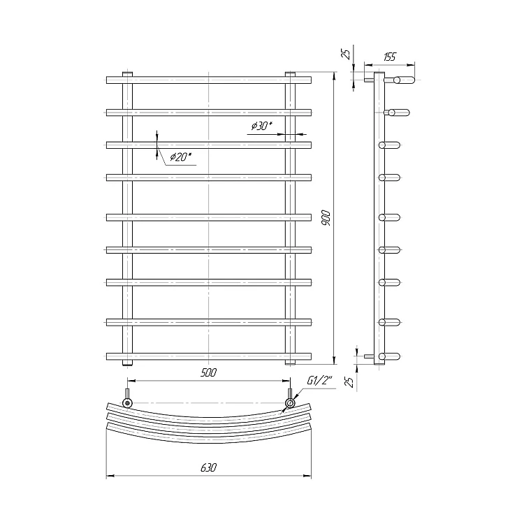 Характеристики - Водяной полотенцесушитель Mario Марио 900x630/500 mar_29