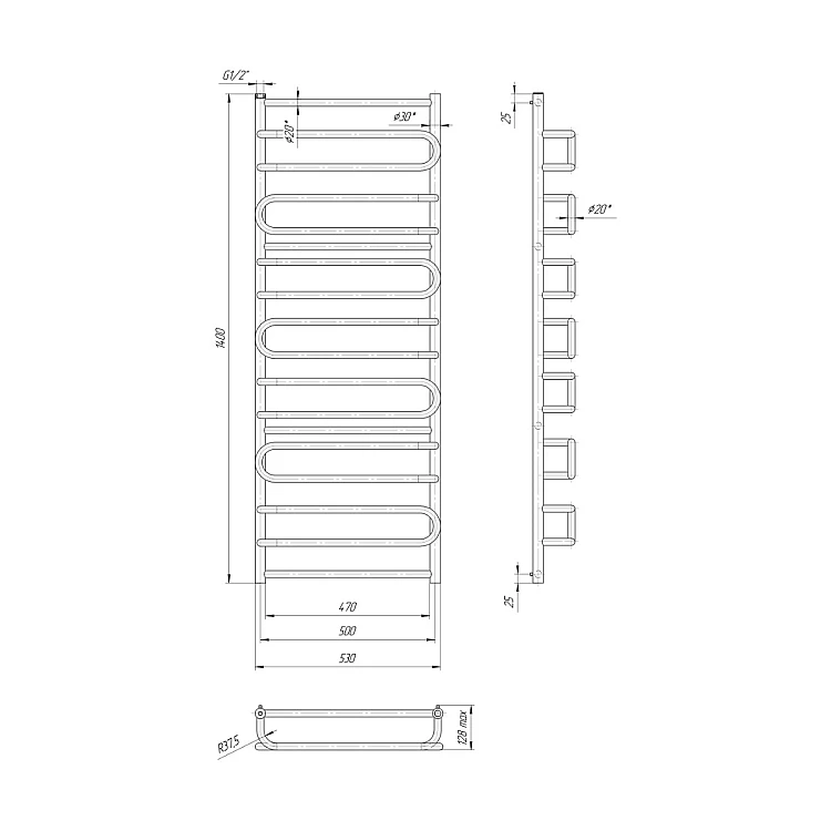 Характеристики - Водяной полотенцесушитель Mario Ница 1400x530/500 mar_64