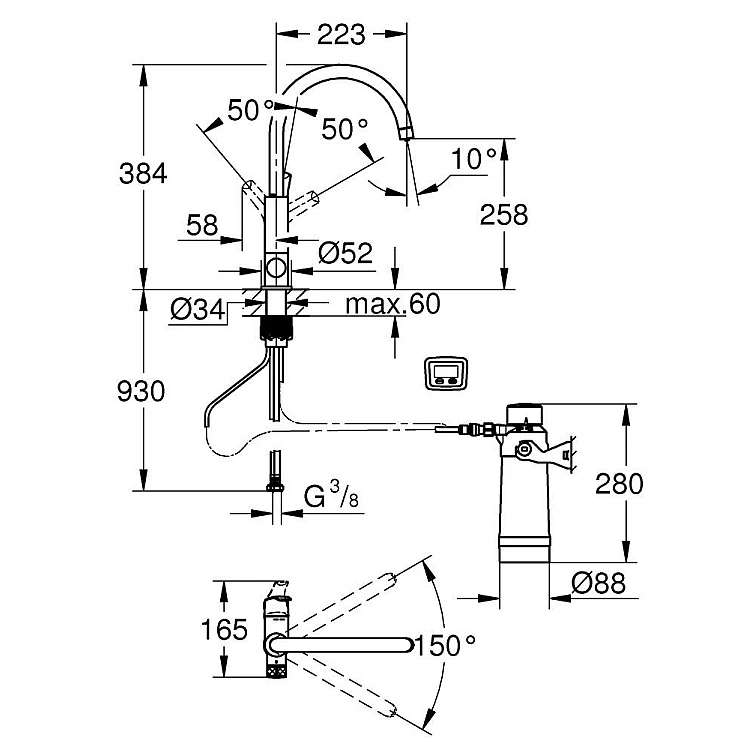 • GROHE Blue однорычажный смеситель для мойки с функцией очистки водопроводной воды
