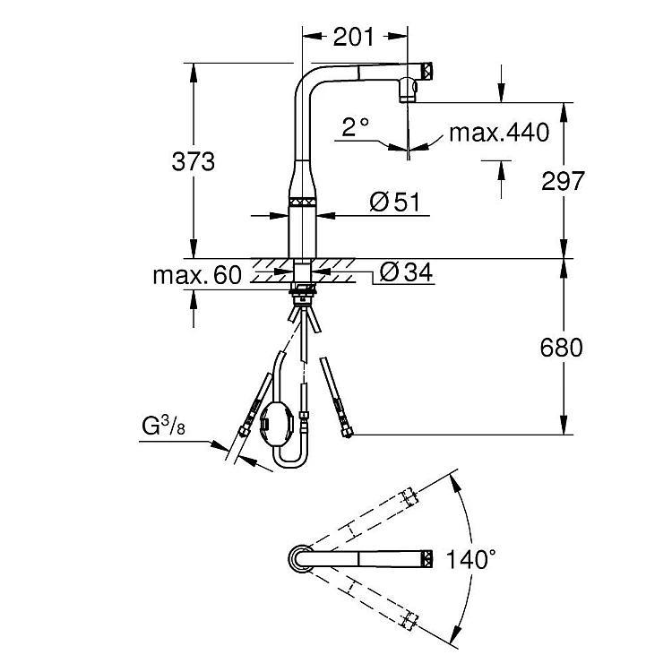 Характеристики - Смеситель для кухни с выдвижной лейкой Grohe Essence Smartcontrol 31892KF0 черный матовый