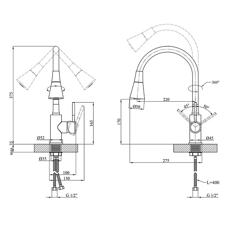 Характеристики - Смеситель для кухни Kroner KRM Kuche - C132BLK