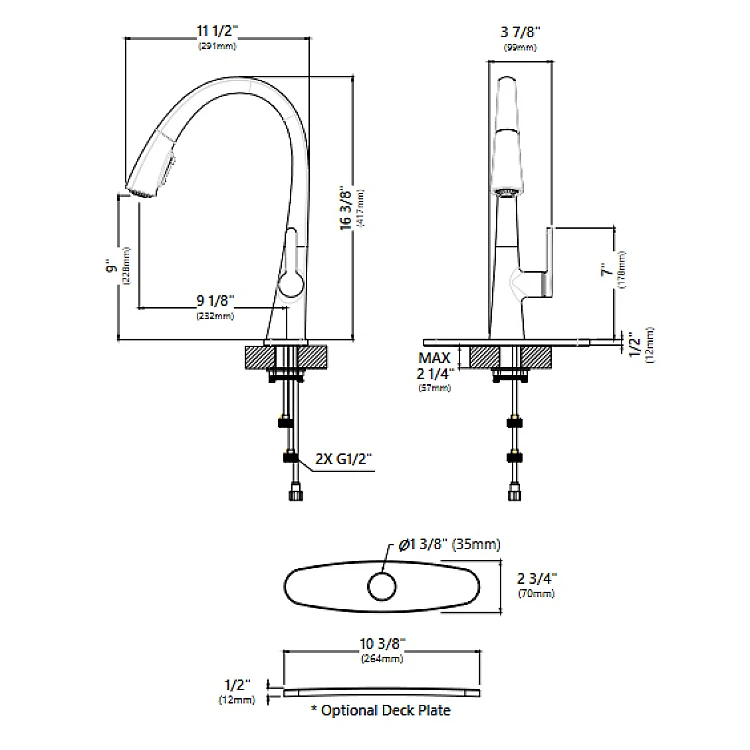 Дополнительная палуба (входит в комплект) позволяет установить этот смеситель на мойку с 1, 2 или 3 отверстиями.