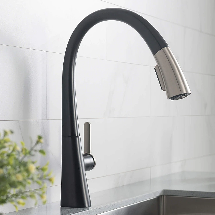 Описание товара - Смеситель для кухни с выдвижным изливом Kraus Nolen KPF-1673SFSMB черный/нержавеющая сталь