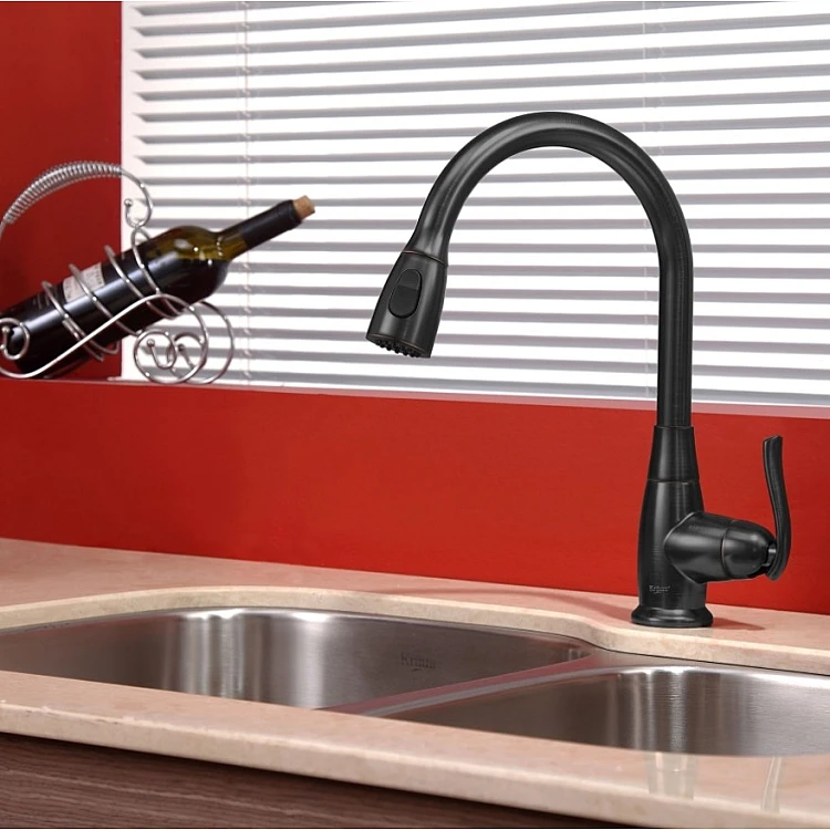 Описание товара - Смеситель для кухни с выдвижным изливом Kraus KPF-2230ORB черная бронза