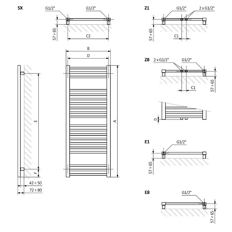 Рушникосушка Bone 760x500 Ral California Beige SX - стильна водяна рушникосушарка у формі елегантної драбинки з витонченим покриттям California Beige (теплий бежевий). Модель поєднує мінімалістичний дизайн із високою функціональністю, створюючи атмосферу тепла і комфорту у ванній кімнаті. Стільна конструкція з високоякісного металу забезпечує надійність і довговічність експлуатації. Порошкове матове покриття SX стійке до вологи, корозії та подряпин, зберігає привабливий зовнішній вигляд навіть за інтенсивного використання. Модель має нижнє крайне підключення з універсальною можливістю монтажу (ліве / праве), що дозволяє легко адаптувати рушникосушку до різних схем підключення систем опалення чи гарячого водопостачання.