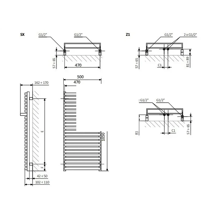 Рушникосушка водяна Terma City 1050x500 WGCIT105050KBCOSX, коричневий