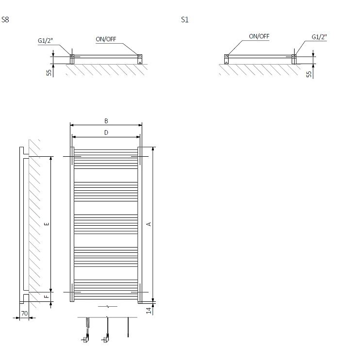 Рушникосушка електрична Terma Fiona One 1140x430 WWFIE114043K9M5E8P, чорний матовий
