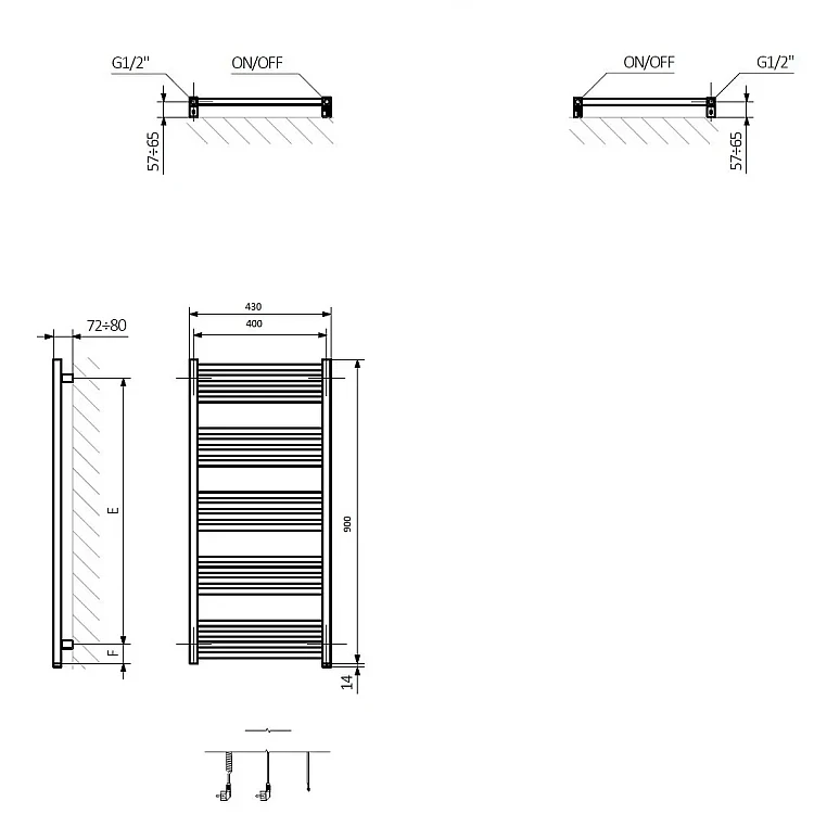 Рушникосушка електрична Terma Fiona One 900x430 WWFIE090043K9M5E1P, чорний матовий