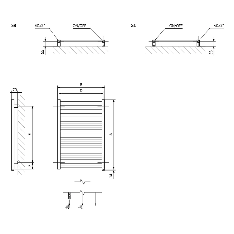 Характеристики - Рушникосушка електрична TERMA MARLIN ONE 1185x530 WWMRN118053KS95E8U, чорний матовий