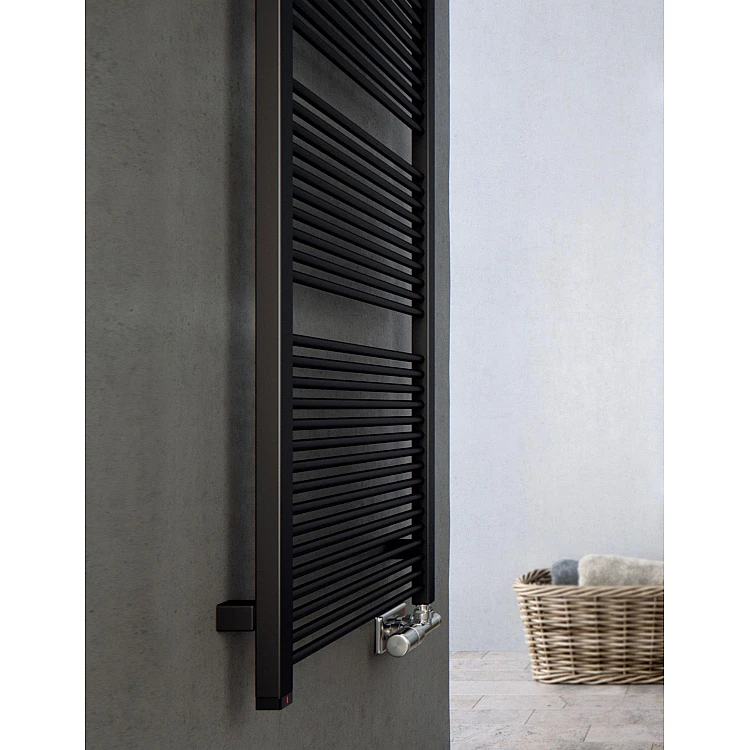 Рушникосушка Mike 735x530 Ral Soft 9005 SX - стильна водяна рушникосушарка у формі драбинки, виконана в елегантному чорному матовому кольорі RAL 9005 Soft. Модель ідеально доповнює сучасні інтер’єри ванних кімнат у стилі мінімалізм, лофт або modern.Завдяки компактним розмірам рушникосушка зручно розміщується навіть у невеликих приміщеннях, забезпечуючи ефективне сушіння рушників і додатковий комфортний обігрів. Матове покриття Soft не лише виглядає преміально, а й стійке до вологи, корозії та механічних пошкоджень. Модель серії SX має нижнє крайні підключення з універсальною можливістю монтажу (ліве або праве), що значно спрощує встановлення та дозволяє адаптувати рушникосушку до різних схем підключення системи опалення або гарячого водопостачання.