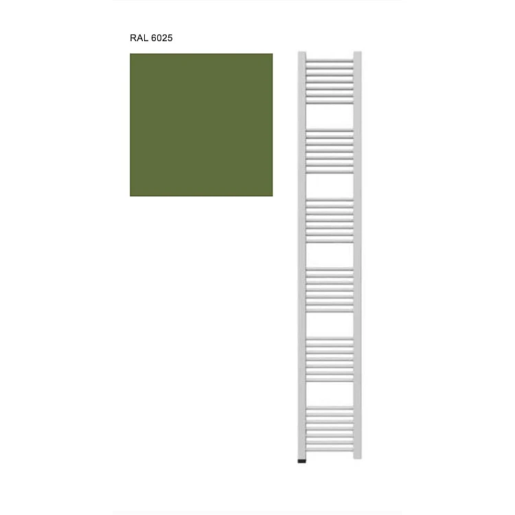 Рушникосушка Mike One 1710x230 Ral 6025 E8 400W шнур спіральний з вилкою - сучасна електрична рушникосушарка з вертикальним дизайном, виконана у стильному кольорі RAL 6025 (глибокий зелений). Витончена форма та компактна ширина роблять модель ідеальним рішенням для сучасних ванних кімнат, де важлива кожна деталь простору. Модель оснащена електричним нагрівальним елементом потужністю 400 W, що забезпечує швидке та ефективне сушіння рушників, а також підтримує комфортний мікроклімат у приміщенні. Рушникосушка має спіральний шнур з вилкою, що дозволяє легко підключити її до стандартної електромережі без додаткового монтажу. Завдяки якісному порошковому фарбуванню поверхня стійка до вологи, корозії та зберігає бездоганний вигляд протягом тривалого часу. Mike One — це вдале поєднання мінімалізму, практичності та надійності.